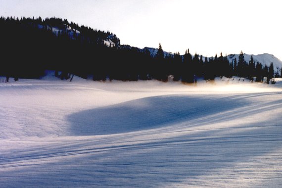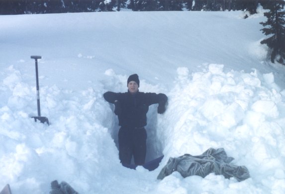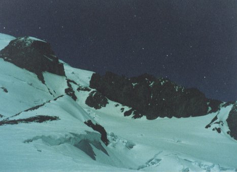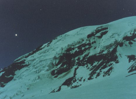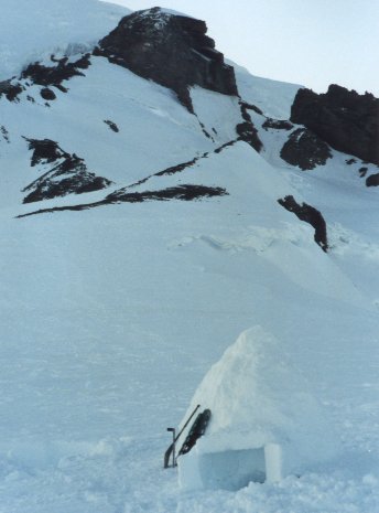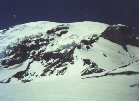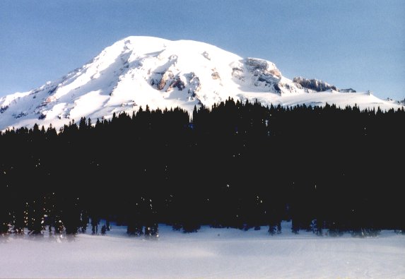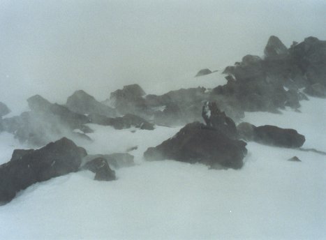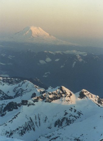 by Anvil Rock on the Muir snowfield. Top left is Mt Adams.